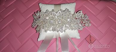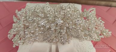 vendo accessori per capelli da sposa o cerimonia. argentato. meraviglioso molto particolare pieno di strass e perline bianche è molto particolare. è assolutamente nuovo. spedizione a carico dell'acquirente. (eventualmente ho anche velo pienissimo di strass luccicanti, scarpe sneakers donna sposa alte e ciabatte con piume bianche)
