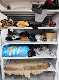 Vendo due carrelli mobili comprensivi di minuterie metalliche per pelletteria e calzature, ricambi per applicazioni di rivetti e velette al prezzo di € 800 a carrello inoltre pelle varia €1 a piede, confezioni 10 circa contenenti zip varie misure e colori € 500,fibbie per cinture uomo colore nikel , ottone in materiale protetto € 300 e tantissimo altro materiale di rinforzo per lavorazioni di pelletteria a prezzo da concordare per informazioni tel (3383118980)