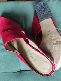 Un paio di ciabatte eleganti a fascia .. in pelle rossa... comprate ad Ischia da RENATA E SALVATORE no 37 ..tacco con gomma di sicurezza.