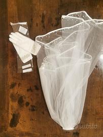 Elegantissimo velo rifinito con perline in basso, abbinato ai guantini con perle all'altezza dei polsi - oppure a scelta con merletto. Decorazione per acconciatura.
