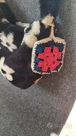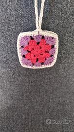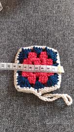 Fatto a mano da me con granny square all'uncinetto. Rosso e lilla, rosso e blu. Bordo bianco.