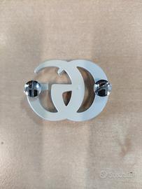 Splendido accessorio Gucci nuovo in perfette condizioni color bianco. Originale 100%. Utilizzabile come spilla o fibbia. Le viti posteriori sono svitabili.