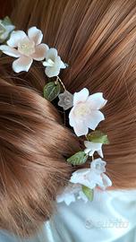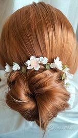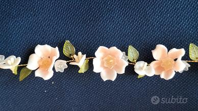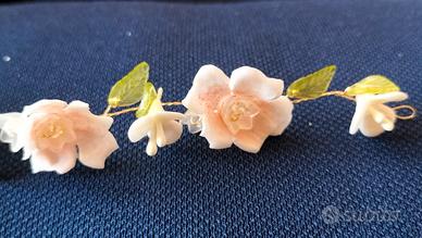 Striscia con fiori di porcellana fredda L'accessorio si presta ad essere usato nelle varie pettinature. Oggetto artigianale italiano e unico