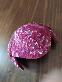 l'anima è in ferretto,con retina rigida incastonata di paillettes e perline condizione perfetta,mai utilizzata