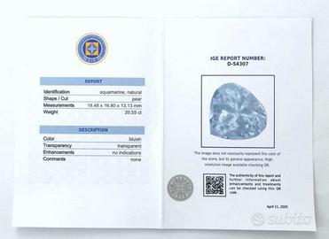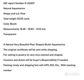 Per gli amati e collezionisti di pietre preziose ! Propongo pietra di acquamarina di 20.55 carati
