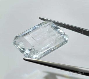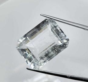 La pietra presenta ottima trasparenza, colore azzurro-verde chiaro e taglio smeraldo, che valorizza brillantezza e profondità.