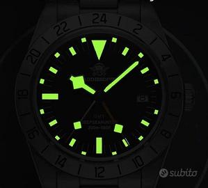 Condizione : Nuovo - mai usato in confezione originale Pagamento: Solo mediante TuttoSubito con Protezione Acquisto Inclusa Consegna: solo Spedizione gestita e Garantita da Subito Movimento svizzero Ronda 515-24H Ufficiale ADDIESDIVE Italia garanzia 24 mesi Scopri il mondo con questo orologio che racchiude lo spirito avventuroso degli esploratori. Costruito con materiali solidi come acciaio inossidabile e cristallo minerale, questo orologio unisce lusso e resistenza. Il movimento con funzione GMT assicura puntualità ovunque tu vada, il tutto a un prezzo imbattibile. E' l'orologio perfetto per chi cerca stile e prestazioni senza compromessi al miglior prezzo! ADDIESDIVE è un brand emergente e ben consolidato nel mondo dell'orologeria, che sta guadagnando riconoscimento per i suoi orologi di lusso a un prezzo equo. Modello di orologio: AD2036 Materiale dello specchio: vetro minerale Tipo di specchio: specchio a bolle Tipo di movimento: quarzo GMT movimento Svizzero Modello di movimento: svizzero Ronda 515-24H Materiale cassa: 316L solidoacciaio inossidabile Materiale fibbia: 316L solido sfibbia con piastra in acciaio Tipo di fondello: fondello avvitato con coperchio Diametro cassa: 39mm Lunghezza cassa: 48,5 mm Spessore cassa: 12,8 mm Posizione anse cassa: 20 mm Peso dell'orologio: 130 g Lunghezza dell'orologio: 220 mm Adatto per polso: fino a 22 cm Materiale cinturino: cinturino in acciaio Rivestimento specchio: rivestito con pellicola blu antiriflesso Tipo di corona: Corona a vite Misura della corona: 7, mm (diametro) Colorequadrante: nero Superficie luminosa: polvere super luminosa retrò 240.000/KG, Colore luce giallo-verde Dimensioni della superficie: 31,0 mm*30 mm**0,40 mm Tecnologia del puntatore: ago per fiori batch Bagliore: polvere retrò super luminosa, giallo-verde Livello di impermeabilità: 200metri impermeabili/immersioni Imballaggio: professionale BOX plastica impermeabile Ufficiale e originale ADDIESDIVE Italia garazia 2 anni