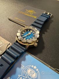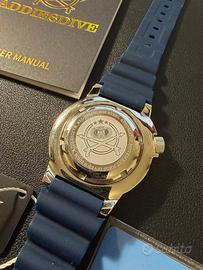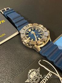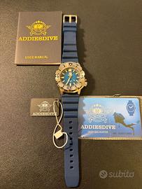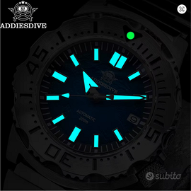 ADDIESDIVE AD2047 "Seiko Monster" Full Set come nuovo. Acquistato e indossato una volta e poi messo in collezione. Movimento meccanico automatico NH35 Vetro Zaffiro con pellicola antiriflesso senza ombre svizzera con rivestimento interno Ghiera in acciaio Funzioni di movimento:3 mani/calendario/data, 21,600 vibrazioni all'ora (3Hz), stop-secondi, autoavvolgimento bidirezionale, 24 gioielli, 41 ore di accumulo di energia. Materiale della cassa:Acciaio inossidabile 316L Lavorazione della custodia:Lucido + spazzolato Acciaio inossidabile 316L Diametro della cassa:42mm Lunghezza della cassa:47.7mm Spessore della cassa:13.7mm Corona a vite Luminescenza superficiale:BGW9 polvere super luminova Grado impermeabile:200 metri impermeabile