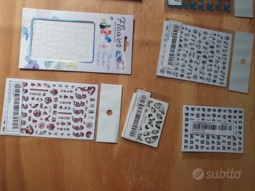 Decorazioni adesive per unghie, varie fantasie e colori.