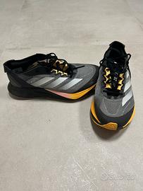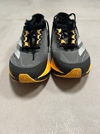 Come si puo vedere in foto dalla suola la scarpa è praticamente nuova, utilizzata solo in gara ha circa 85km.