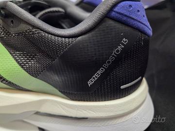 adidas adizero boston 13 taglia 44 ⅔. messe unna volta. come nuove. colore nero con bande verdi