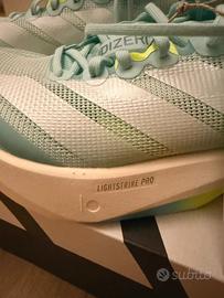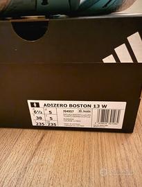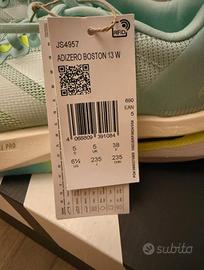 Adidas Adizero Boston 13 W (modello running), colore verde acqua/mint con dettagli giallo fluo