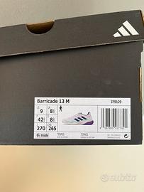 Vendo scarpe da tennis Adidas Barricade 13 , numero 42 2/3 equivalenti a 42 italiano ovvero 27 cm. Le sacrpe sono quasi nuove , utilizzate 5 ore. Le vendo perche non vanno bene per il mio piede. Ovviamente ho scatola e cartellino originale. Pagate 130 € nuove