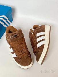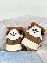 Uppers of the adidas Campus 00s Bark are designed from premium bark brown suede constructing, which renders strength and stability. It features a leather base, with the side panels entailing the 3-Stripes in white. Comfort from its inner cushioning is paramount, preventing joint contact while walking. The underfoot and the off-white midsoles are heightened to promote traction and flexibility while walking and running. Its treads act as an anti-slip feature for this shoe, providing traction. The lace-up reduces shoe movement and adds grip to feet during performances. The shoe’s design concludes atop a chocolate-color tread outsole as an allusion of the Campus brand history.