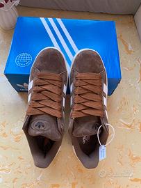 Uppers of the adidas Campus 00s Bark are designed from premium bark brown suede constructing, which renders strength and stability. It features a leather base, with the side panels entailing the 3-Stripes in white. Comfort from its inner cushioning is paramount, preventing joint contact while walking. The underfoot and the off-white midsoles are heightened to promote traction and flexibility while walking and running. Its treads act as an anti-slip feature for this shoe, providing traction. The lace-up reduces shoe movement and adds grip to feet during performances. The shoe’s design concludes atop a chocolate-color tread outsole as an allusion of the Campus brand history.