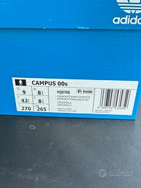 Vendo Adidas Campus 00s originali, colore nero con strisce bianche. š Taglia: 42 2/3 (US 9) šØ Colore: nero / bianco š¦ Complete di scatola originale š Inclusi lacci alternativi neri (oltre a quelli bianchi montati) ā Condizioni: usate ma tenute bene ā¢Tomaia in buono stato ā¢Suola ancora in ottime condizioni (vedi foto) ā¢Normali segni dāuso, nessun difetto rilevante