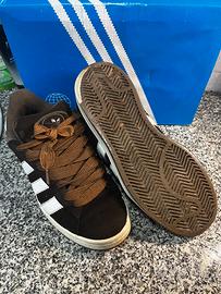 Uppers of the adidas Campus 00s Bark are designed from premium bark brown suede constructing, which renders strength and stability. It features a leather base, with the side panels entailing the 3-Stripes in white. Comfort from its inner cushioning is paramount, preventing joint contact while walking. The underfoot and the off-white midsoles are heightened to promote traction and flexibility while walking and running. Its treads act as an anti-slip feature for this shoe, providing traction. The lace-up reduces shoe movement and adds grip to feet during performances. The shoeโs design concludes atop a chocolate-color tread outsole as an allusion of the Campus brand history.