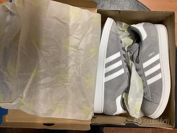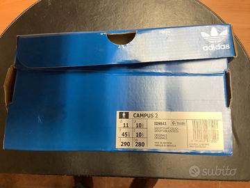 Scarpe Adidas Campus 2 taglia 45 e 1/3 ( generalmente per Adidas ci vuole almeno 1 numero sopra poiché calzano poco) mai indossate!!! , c’è ancora il tagliando nella asola delle stringhe oltre al cararmato completamente bianco . Praticamente nuove complete di scatola originale .