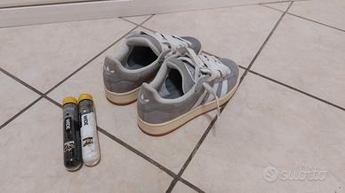 Queste Adidas Campus, colore Grigio, Taglia 40, mi sono state regalate un paio di mesi fa, le ho indossate pochissimo (4/5 volte) per passeggiare. Le vendo perchè personalmente non mi piacciono più, inoltre do in omaggio un paio di lacci grigi, neri e bianchi di riserva. Comunque sono sempre scarpe molto comode e se vi piacciono e vi serve una scarpa in ottime condizioni, che abbia un costo economico, questo articolo è quello che fa per voi!