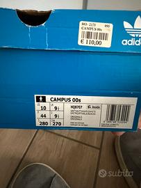 Adidas Campus colore grigio e bianco. Taglia 44 (UK 9). Le scarpe vengono vendute con la scatola originale e in piu’ un set di lacci grigi nuovi.