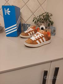scarpe adidas campus n 38 colore arancione e bianche con lacci bianchi nuovi e arancioni di ricambio usati con piccoli segni di usura dati dal normale utilizzo ma comunque in buone condizioni come da foto con scatola originale vendo a soli 19 euro per info o altre foto cell 333.2501209 anche WhatsApp