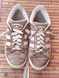 Adidas campus unisex rosa/marroni con lacci rosa, le scarpe sono state usate, presentano segni di usura ma sono comunque belle, non riesco a mettere più di 6 foto nell'annuncio quindi se volete vedere gli altri difetti contattatemi