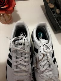 Adidas Court Base bianche e nere sneakers per l’autunno inverno con para bassa. Modello samba numero 37.5 ma ideale anche per 37 scarpe sportive anche da palestra ginnastica. Ideali anche come regalo