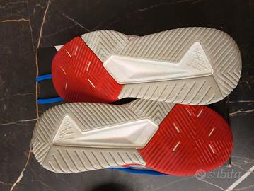 Vendo scarpe utilizzate 5 mesi, la media di due partite a settimana. Vendo per infortunio e impossibilitato a giocare. Numero 46. Unico difetto leggermente strappate il tessuto lungo la parte interna del tallone come in foto.