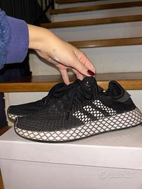 Adidas deerupt runner bianco e nere taglia 38,5 usate pochissime volte per fare ginnastica a scuola per meno di un anno. Si presentano in ottime condizioni, prive però della scatola originale in quanto buttata per errore