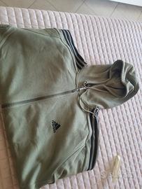 FELPA MAI MESSA PRATICAMENTE NUOVA colore verde militare/salvia. È realizzata in morbido tessuto pile (fleece) misto cotone e poliestere riciclato, pensata per offrire calore e comfort quotidiano.