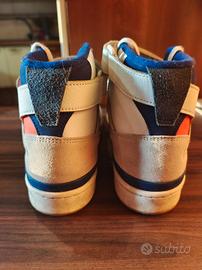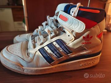 Vendo bellissime sneaker Adidas Forum 84 High (codice modello IE7199), versione con dettagli blu e arancioni dallo stile vintage anni '84. Le scarpe sono originali e in condizioni eccellenti, indossate pochissimo (come visibile dalle foto della suola e degli interni). Sono pulite e pronte per essere utilizzate. Caratteristiche principali: Taglia: 43 1/3 EU (9.5 US / 9 UK) Modello: High Top con cinturino a strappo (velcro) rimovibile alla caviglia. Materiale: Pelle di alta qualità con inserti in suede. Stato: Usato pochissimo, quasi pari al nuovo. Un classico intramontabile, perfetto sia per il basket che per l'abbigliamento casual quotidiano. Disponibile per consegna a mano o spedizione tramite Subito. Non esitate a contattarmi per ulteriori foto o informazioni