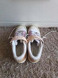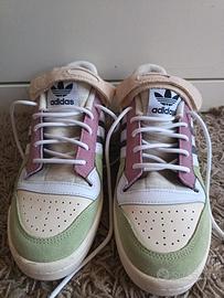 Vendo sneaker Adidas Forum Low originali, modello iconico caratterizzato dal classico cinturino a strappo sulla caviglia. Questa versione speciale presenta una bellissima combinazione di colori pastello (verde menta, rosa antico, beige e dettagli ocra) con un mix di materiali premium tra pelle liscia e inserti in suede. Le scarpe sono in ottime condizioni, usate con molta cura. La suola è praticamente intatta e gli interni sono puliti. Dettagli principali: Modello: Adidas Forum Low Colore: Multi-color / Pastel Edition Taglia: [Inserisci Taglia EU] Condizioni: Eccellenti, come da foto. Caratteristiche: Chiusura con lacci e cinturino regolabile rimovibile, suola preformata in gomma.