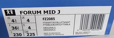 Vendo splendide Adidas Forum Mid, colore bianco e azzurro, taglia 36 2/3.