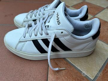 Vendo un paio di Adidas Grand Court 2.0, un modello intramontabile ispirato allo stile tennis degli anni '70. Perfette per un look casual quotidiano, queste sneakers si abbinano facilmente a qualsiasi outfit grazie alla tomaia bianca con le iconiche tre strisce nere. Dettagli dell'articolo: Marca: Adidas. Modello: Grand Court 2.0. Colore: Cloud White / Core Black. Caratteristiche: Tomaia in pelle sintetica resistente e suola in gomma preformata. Condizioni del prodotto: Le scarpe presentano segni di utilizzo come visibile in foto: Interno: Sono presenti delle abrasioni sulla stoffa nella zona del tallone. Solette: Le scarpe non hanno le solette originali all'interno (possono essere facilmente sostituite con un paio nuovo o personalizzato). Esterno: La tomaia e la suola sono in discrete condizioni generali, ideali per chi cerca un paio di scarpe da "battaglia" o per il tempo libero. 📦 Spedizione: Imballaggio accurato per garantire una consegna sicura. #Adidas #GrandCourt #AdidasGrandCourt #Sneakers #ModaUomo #ModaDonna #Streetwear #ScarpeSportive #Outlet
