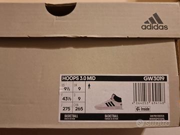 Vendo scarpe Adidas Hoops 3.0 mid, come nuove. Le scarpe sono state indossate una sola volta. Taglia 43⅓ Colore Bianco e Nero