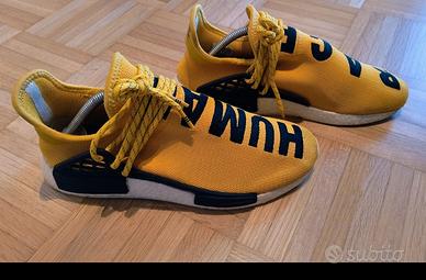 Sneakers Prima uscita della serie di adidas NMD by Pharrell. La struttura modificata delle NMD by Pharrell presenta una tomaia in mesh giallo acceso con scritte in dettaglio "HUMAN" e "RACE" su ogni scarpa. Condizioni perfette, senza scatola N°44