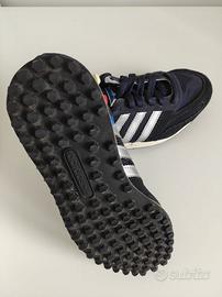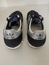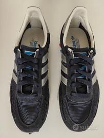 Vendo Bellissime e Ricercate Scarpe ADIDAS L.A. TRAINER ORIGINALI ed AUTENTICHE al 100%, in Pelle Scamosciata e Tessuto Colore Blu e Strisce Argento.
