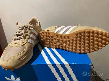 Scarpe Adidas originali L. A. Trainer uomo, beige chiare con strisce bianche, taglia EU 42 US 8,5 UK 8, usate 4 volte ma in eccellenti condizioni, comprate recentemente ma proprio non mi va il numero 42 e quindi le devo vendere.