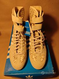 stivali da corsa Adidas Monza GP, modelli vintage originariamente ispirati alla Formula 1. Queste scarpe alte sono state prodotte in diverse colorazioni e sono considerate oggetti da collezione.