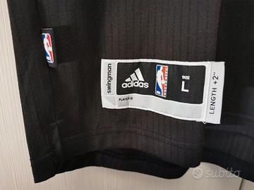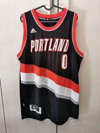 Maglia ufficiale NBA Adidas, versione Swingman. Damian Lillard #0, Portland Trail Blazers, colorway nero alternate edition. Produzione agosto 2015. Taglia L (taglio +2"). 100% poliestere. Loghi NBA e Adidas ricamati, numeri e lettere in appliqué. Made in Nicaragua. Condizioni eccellenti, indossata raramente. Pezzo autentico acquistato negli USA.