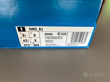 Vendo Adidas NMD_R1 colore bianco, mai usate con etichette e scatola originali, taglia 43 1/3. Prezzo 90 euro e spedizione a carico dell'acquirente