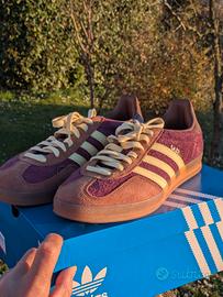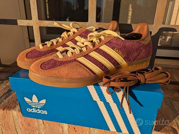 vendo in condizioni pari al nuovo 10/10, adidas gazelle colore viola marrone e striscie color giallo crema, con lacci di scorta originali