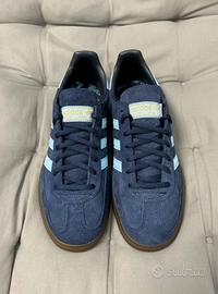 Le adidas Originals Handball Spezial sono delle sneaker basse comode, resistenti e antiscivolo. Questa classica scarpa retrò è unisex e presenta un design a T con la scritta "Speziala" stampata in oro. La tomaia è realizzata in un materiale con pannelli in pelle, perfetta per l'autunno e l'inverno. Nuove di zecca e consegnate nella loro scatola. Sorprendi la persona amata!