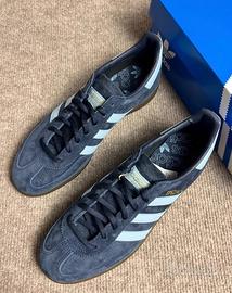 Le adidas Originals Handball Spezial sono delle sneaker basse comode, resistenti e antiscivolo. Questa classica scarpa retrò è unisex e presenta un design a T con la scritta "Speziala" stampata in oro. La tomaia è realizzata in un materiale con pannelli in pelle, perfetta per l'autunno e l'inverno. Nuove di zecca e consegnate nella loro scatola. Sorprendi la persona amata!