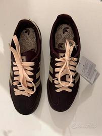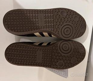 Vendo Adidas Originals Samba colore marrone con strisce bianche, modello iconico molto richiesto dagli appassionati di sneakers.
