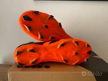 Vendo scarpini da calcio Adidas Predator Accuracy+ FG, colore nero/arancione fluo, indossati una sola volta per circa 10 minuti — poi purtroppo infortunio (crociato) e non ho più potuto utilizzarli. Condizioni praticamente nuove, nessun segno di usura reale. Modello: Adidas Predator Accuracy+ (laceless) Taglia: EU 45⅓ / UK 10½ / US 11 / JP 290 / CHN 280 Colore: Nero / Arancione Solar Vendo a 80 EUR, pagati 130 EUR