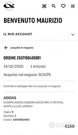 Adidas Adios Pro 3 in perfette condizioni usate solo per una gara di 10 km vendo a causa di infortunio le scarpe sono in perfetto stato come si evince dalle foto
