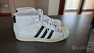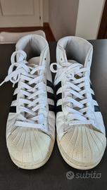 scarpe Adidas pro model. Modello giovane che si presta a outfit sportivi o casual. Usate presentano alcuni piccoli segni d'usura sul pellame in particolarein corrispondenza dell'allacciatura. (vedi foto)