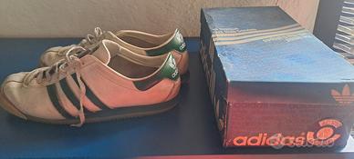 Vendo Adidas Leader originali anni 80 made in France scarpa molto rara in pelle in buone condizioni con scatola un po consumate sul posteriore e con segni del tempo misura. 10 oppure. 44 e 2/3.