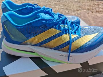 Misura 45 e 1/3 (10.5). Vendo scarpe da running Adidas Boston 13 (scarpa reattiva con barre interne in fibra di vetro). Valore di mercato 160 euro, nuove con cartellino e scatola, mai indossate. Bellissime in questa rara colorazione con strisce dorate. sono purtroppo grandi per la mia calzata. Preferisco acquisto "a vista" (dopo verifica e gradimento), ma posso anche spedire con Tuttosubito. Per altre Info, foto o eventuali proposte d'acquisto esclusivamente attraverso il portale di Subito. N. B. NON GRADITI: -Speculatori -Commercianti -Marketing -Indecisi/Altro...